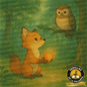 🐾 La Historia de los Animalitos En el bosque, vivía un zorrito curioso llamado Zico, a quien le gustaba mucho explorar y coleccionar cosas brillantes. Él pensaba que la forma de agradar al Gran Creador era trayéndole la piedra más reluciente o la flor más rara que encontrara. Pero un día, el sabio búho Prudencio lo detuvo y le dijo: “Zico, esos regalos son hermosos, pero el Gran Creador no quiere tus tesoros. Lo único que Él pide es el tesoro más grande que tienes: tu corazón“. El búho le explicó que el corazón es donde se guardan lo que ama y lo que piensa. Cuando entregamos nuestro corazón al Creador, le damos todo lo que somos, y entonces Él puede guiar nuestros ojos y nuestros pasos por Su camino de paz. Zico comprendió que su corazón era el regalo más valioso y que, al dárselo a Dios, todo lo demás le iría muy bien.