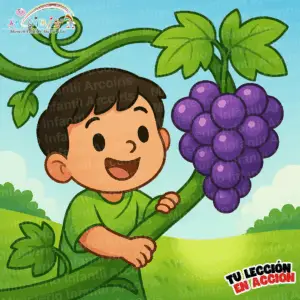 🎯 Objetivo: Que los niños entiendan que necesitan estar conectados a Jesús (la Vid) a través de la obediencia y el amor para poder hacer cosas buenas y útiles (dar fruto).