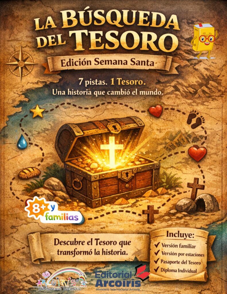 La Búsqueda del Tesoro es un recurso bíblico interactivo donde niños, familias y grupos de Escuela Dominical siguen una serie de pistas que los llevarán a descubrir el mayor tesoro de todos.