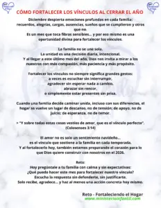 En tiempos donde todo parece debilitar los lazos familiares, te invitamos a volver al diseño original de DIOS: “Hogares edificados sobre Su Palabra“. Cada reto está pensado para fortalecer la fe, restaurar la comunicación y encender nuevamente el amor en casa.