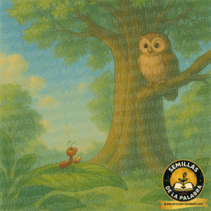 🐾 La Historia de los Animalitos En el bosque, una pequeña hormiguita llamada Piquis se esforzaba por llevar una semilla enorme para su hormiguero. En su camino, miró a su alrededor y se sintió muy pequeña. Había árboles gigantes, montañas enormes y ríos poderosos. Piquis pensó: “¿Qué soy yo? Tan solo una hormiguita en un mundo tan grande”. Justo en ese momento, el sabio búho Prudencio la vio y le dijo: “Piquis, aunque seas la criatura más chiquita, el Gran Creador te formó con amor. Él piensa en ti y te ama tanto que está preparando un hogar hermoso y celestial, un lugar donde podrás vivir con Él para siempre, si lo amas y le obedeces”. Piquis, llena de asombro y alegría, siguió su camino. Ya no se sentía insignificante, sino amada y valorada por el gran Creador del universo.